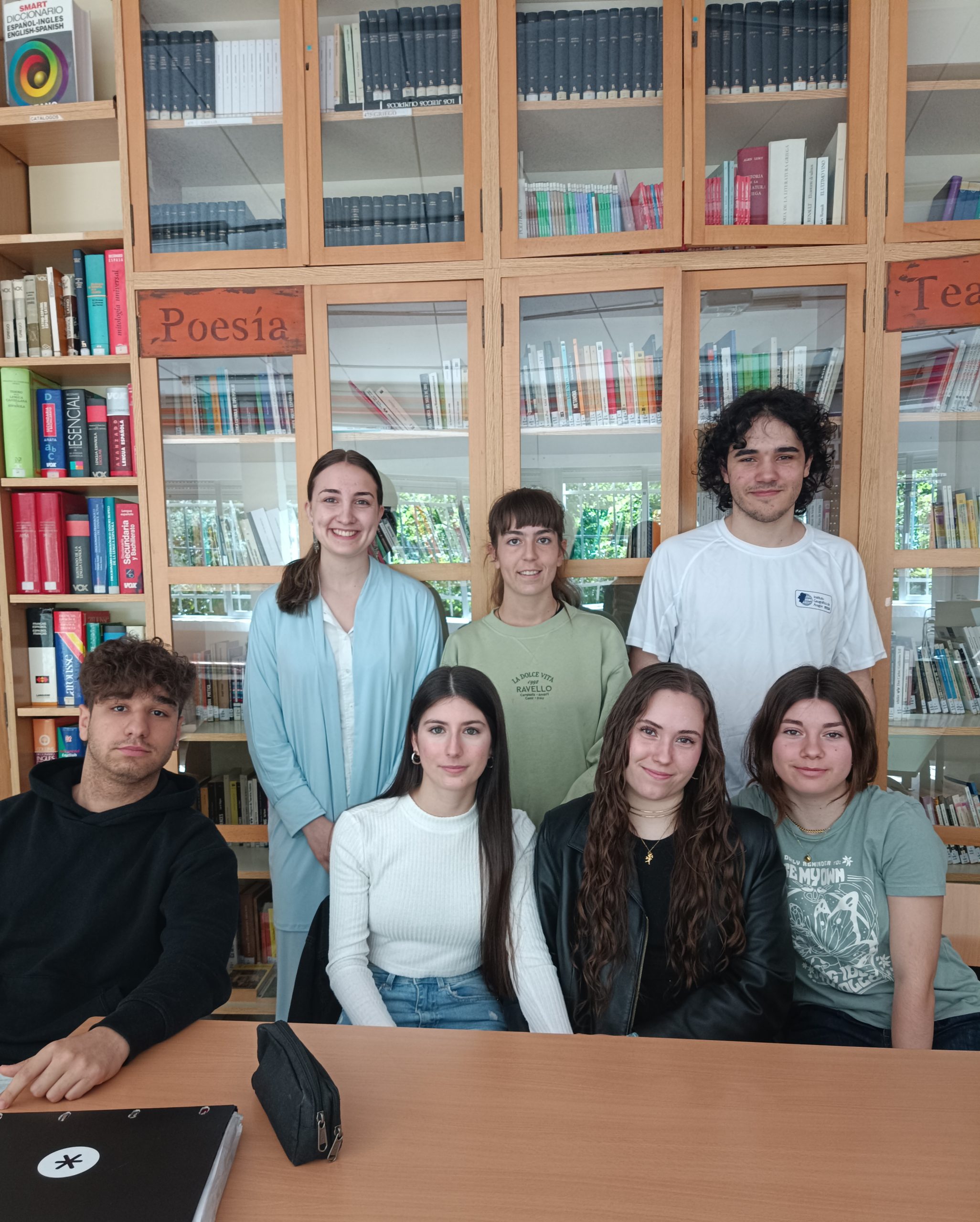 *Imagen del alumnado*: Los compañeros de Humanidades acompañando a las dos alumnas premiadas, Uxue Tío (primera fila, la primera a la izquierda) y Marta Calvo (segunda fila, la segunda a la izquierda).